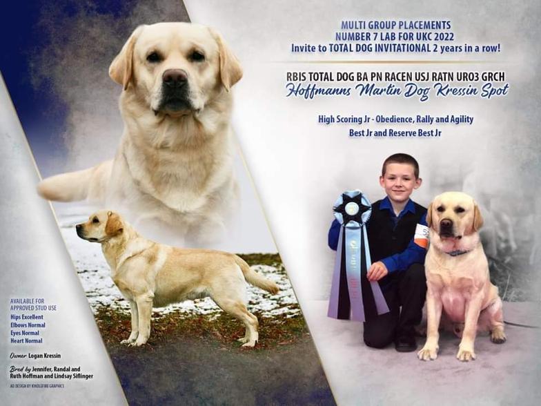 Our 2 male dogs are available for stud use. All health testing are done. Lab is A UKC Champion.