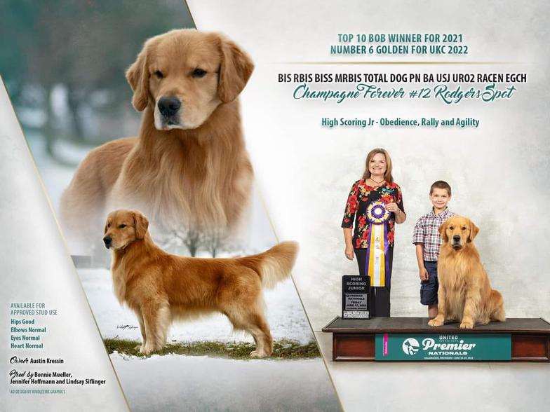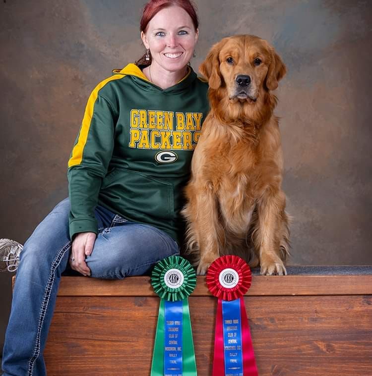 I started showing dogs when I was 9 years old. At the age of 10 I joined 4-H dogs, showing for 10 years in 4-H. Winning Champion in Obedience, Showmanship, and Rally. I also went to the state 4-H dog show where I won High scoring obedience dog with a 199. At the age of 16 I got my 1st golden and started in AKC,UKC, and CPE.